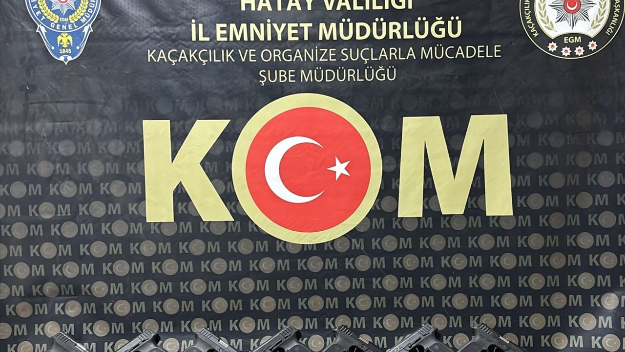 Aracın arka koltuğunun altındaki çuvalda 10 ruhsatsız tabanca ele geçiren ekipler, otomobildeki İ.G. ile E.G'yi gözaltına aldı.