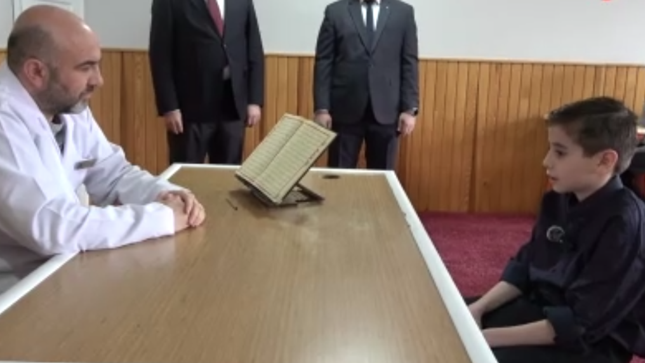 Kütahya İl Müftülüğü Emir Sultan Kur'an Kursu'nda eğitim gören 11 yaşındaki Ömer Sabri Akpolat kısa sürede elde ettiği başarıyla takdir topladı.