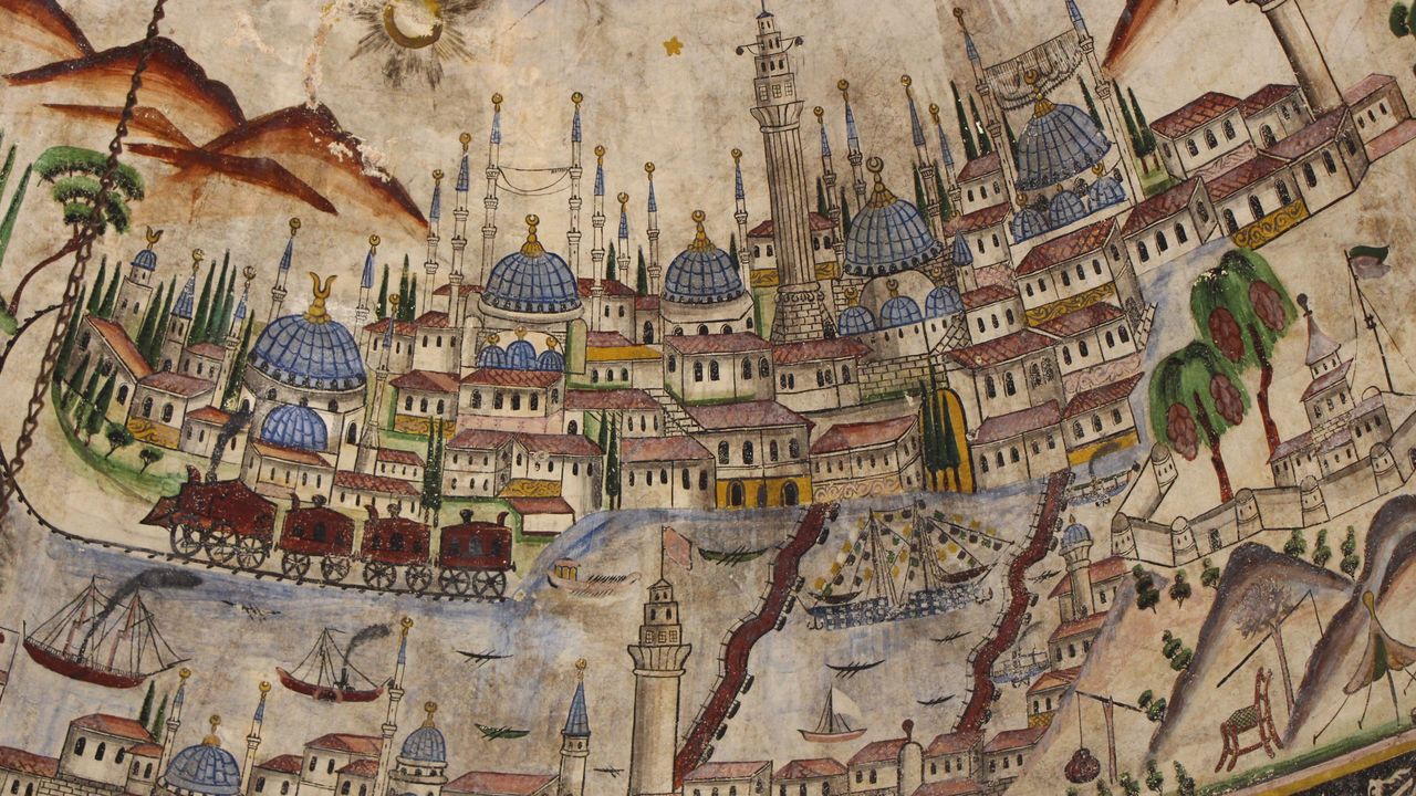 1865 yılında Nakkaş Zileli Emin tarafından ahşap külaha işlenen bu özel çizimler, geç dönem Osmanlı resim sanatının en nadide örnekleri arasında gösteriliyor. Asya ve Avrupa'yı aynı zemin üzerinde ustalıkla harmanlayan tablo, hem tarihi hem de sanatsal değeriyle dikkat çekiyor.