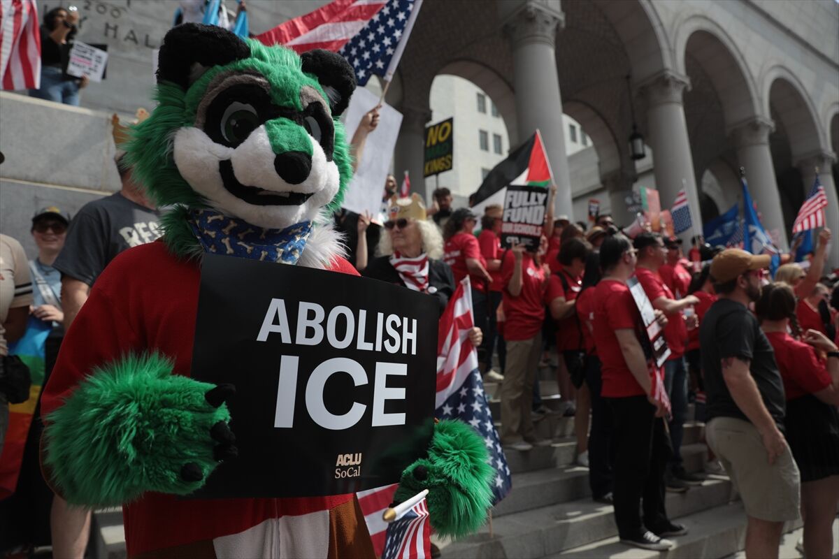 Eylemlerin bir diğer sıcak noktası ise California eyaletinin Los Angeles kentiydi. Kent meydanlarında toplanan binlerce kişi, Trump’ın otoriter yönetim anlayışını eleştiren sloganlar attı.