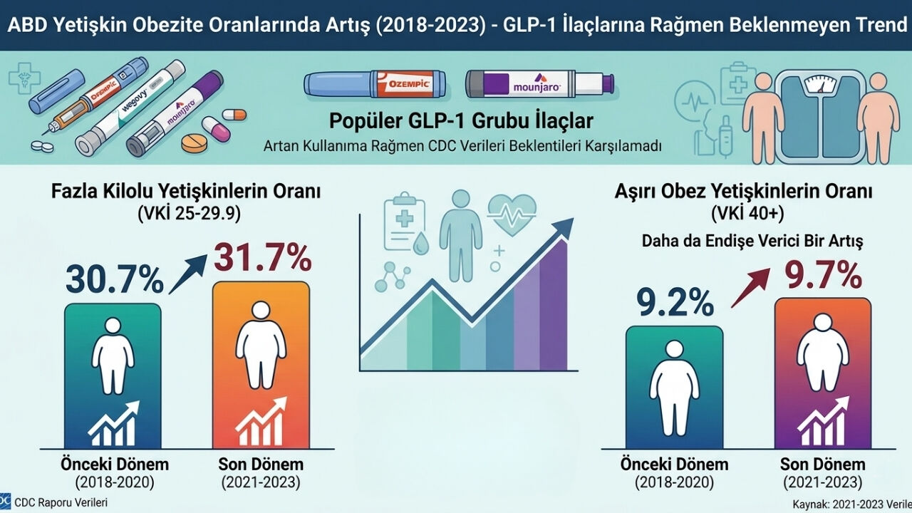 Dünya genelinde "mucize ilaç" olarak adlandırılan Ozempic, Wegovy ve Mounjaro gibi GLP-1 grubu ilaçların kullanımı rekor seviyeye ulaşsa da, ABD Hastalık Kontrol ve Korunma Merkezleri (CDC) tarafından yayımlanan son rapor beklentileri boşa çıkardı.