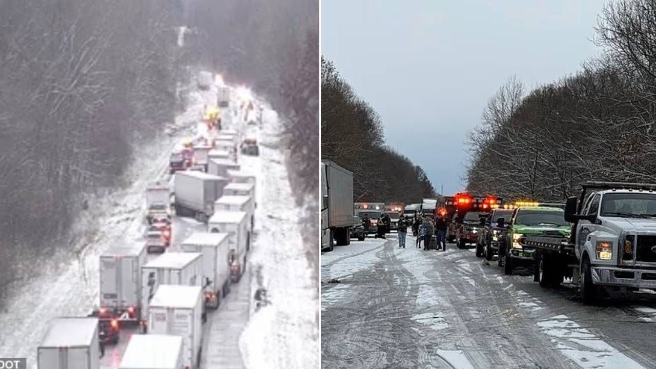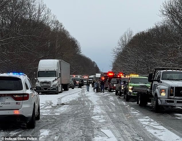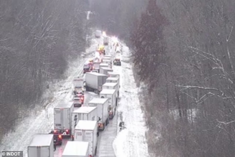 Indiana eyaletinde, tatilden dönen sürücüler kar fırtınasının ortasında kabus gibi bir kaza yaşadı.