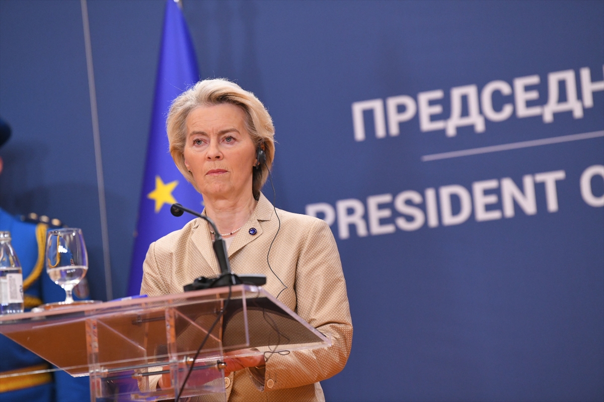 Avrupa Birliği (AB) Komisyonu Başkanı Ursula von der Leyen, Sırbistan’ın AB’ye katılım sürecinde ilerleme kaydetmesinin şart olduğunu belirtti. Von der Leyen, Sırbistan Cumhurbaşkanı Aleksandar Vucic ile düzenlediği ortak basın toplantısında, “Bize güvenmeye devam edebilirsiniz” diyerek AB’nin desteğini sürdürmeye hazır olduğunu vurguladı.