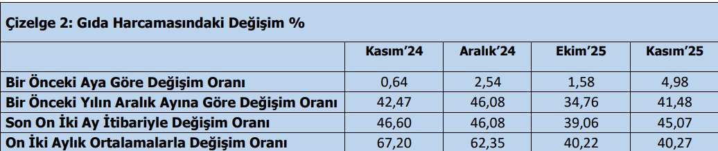 TÜRK-İŞ’in Kasım 2025 verileri, mutfak enflasyonundaki yükselişin hız kesmeden devam ettiğini gösteriyor. Ankara’da dört kişilik bir ailenin gıda için yapması gereken asgari harcama tutarı bir önceki aya göre yüzde 4,98 oranında arttı. Yıllık bazda bakıldığında gıda fiyatlarındaki artış yüzde 45,07 olarak gerçekleşirken, yıllık ortalama artış oranı yüzde 40,27 düzeyinde ölçüldü. Yılın ilk on bir ayında gıda harcamalarındaki toplam artış ise yüzde 41,48 seviyesine ulaştı.