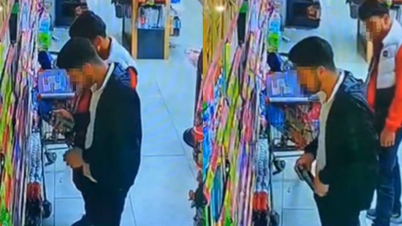 Daha sonra parfümü eline sıkan bir şüpheli kokladıktan sonra beğendiği parfümü aldı. Şüphelilerden biri parfümü montunun cebine koyarken, diğeri parfümü pantolonunun içine koyup marketten ayrıldı. Bu anlar marketin güvenlik kamerası tarafından saniye saniye görüntülendi. Parfümlerin eksik olduğunu fark eden çalışanlar durumu iş yeri sahibi Abdullah Şengil'e bildirdi.