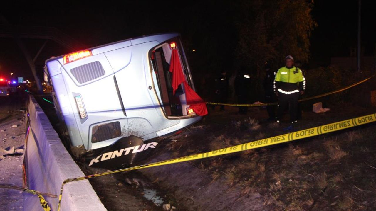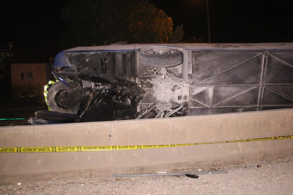 KONTUR firmasına ait otobüs, Hatay’dan Konya’ya sefer yapmak üzere yola çıkmıştı. Otobüsü kullanan Ö.S. (46), 42 HC 737 plakalı araç ile beton bariyere çarptı. Çarpmanın etkisiyle otobüs devrildi.
