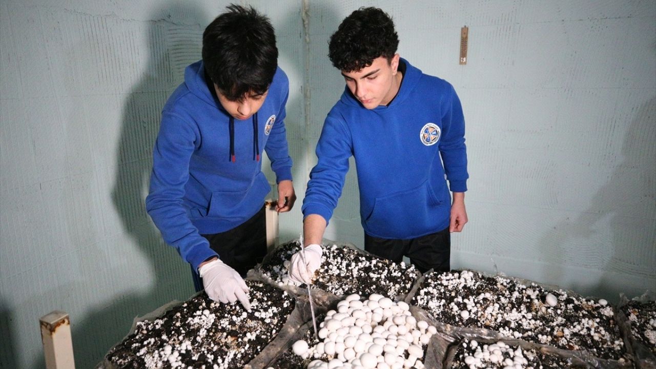 Altyapı çalışmasının tamamlanmasıyla kültür mantarı üretimine başlayan öğrenciler sıcaklık, nem ve hijyen koşullarını düzenli takip ederek ürünlerini toplamaya başladı.