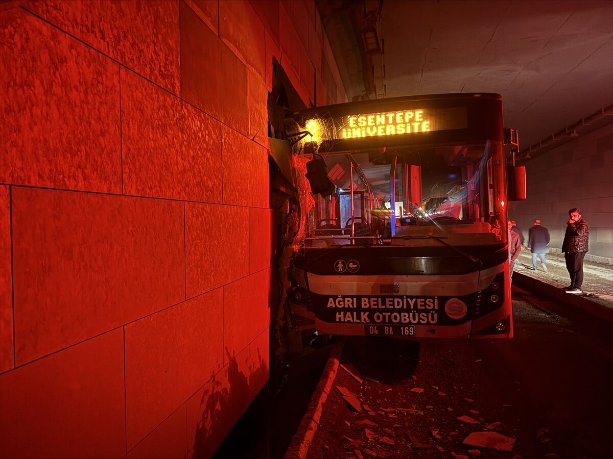 Ağrı Belediyesine ait 04 BA 169 plakalı otobüs, Dörtyol Kavşağı'nda bulunan alt geçitte duvara çarptı.