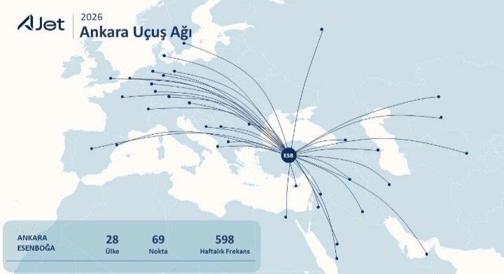 Başkent Ankara'dan yurt dışına en fazla sefer yapan havayolu şirketi konumunda bulunan AJet, bu kez yurt dışı ağını Romanya'nın başkenti Bükreş ile genişletti. 2 Nisan tarihinde başlayacak seferlerin haftada 3 gün karşılıklı uçuşlarla devam edeceği kaydedildi.