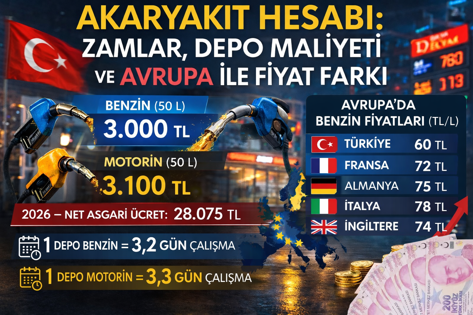 Akaryakıt fiyatlarında yaşanan her artış ya da indirim, araç sahiplerinin cebine doğrudan yansıyor. Küresel petrol piyasasındaki dalgalanmalar, savaşların yarattığı enerji baskısı ve döviz kurundaki hareketlilik pompadaki rakamların sık sık değişmesine neden oluyor. Bu nedenle akaryakıtın gerçek maliyeti artık sadece litre fiyatıyla değil, bir aracın deposunu doldurmanın toplam maliyeti ve bu maliyetin gelir karşısındaki ağırlığıyla da ölçülüyor.