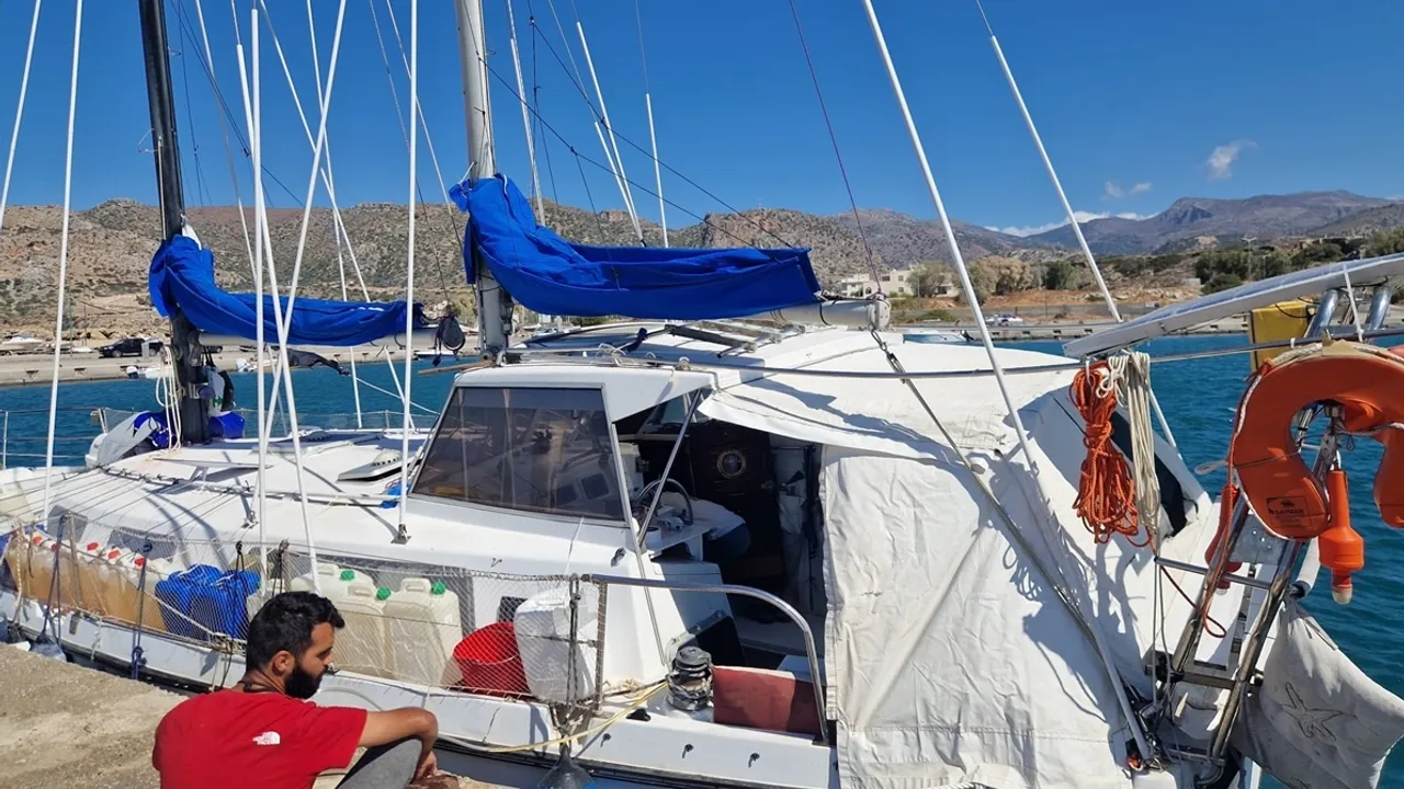 "16 Eylül''de başladığımız yolculuk düne kadar sürdü. Dün meydana gelen kötü hava koşulları nedeniyle Girit''in balıkçı barınağına sığınmak zorunda kaldık. Resmi işlemlerimiz yapıldı, pasaportlarımız alındı. Gerekli kontroller tamamlanınca yola çıkacağız."
