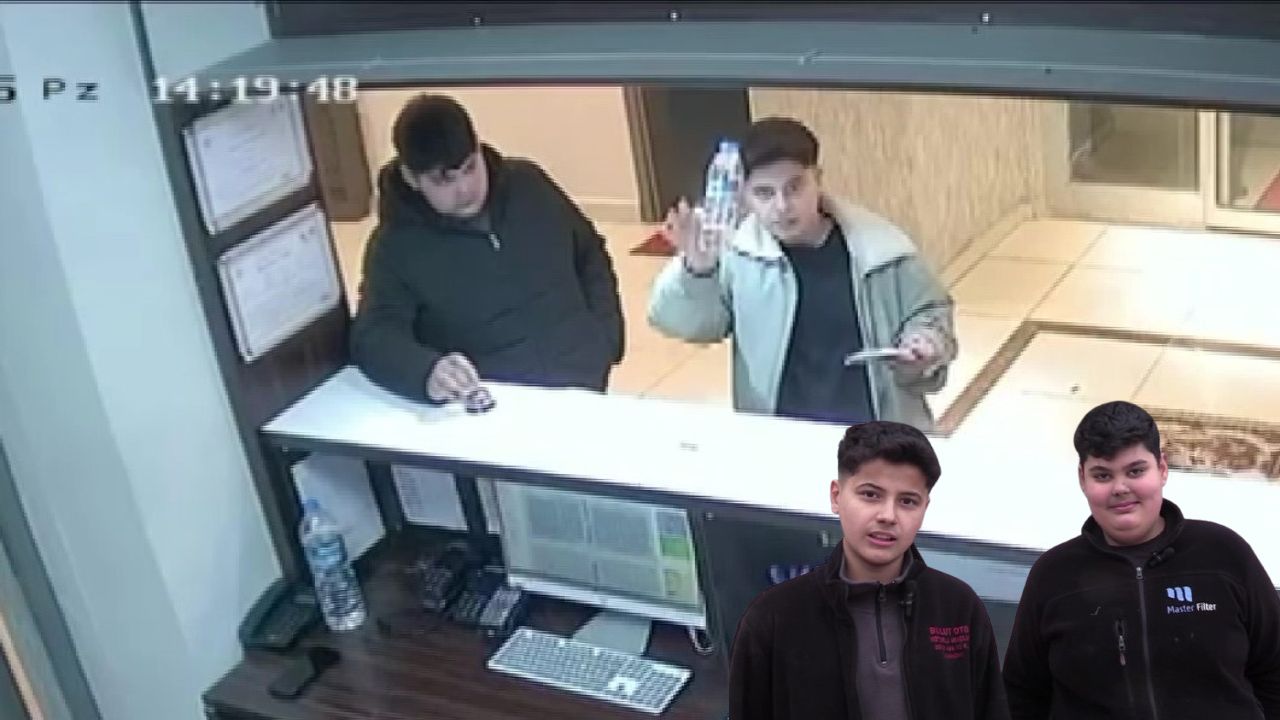 Gümüşhacıköy sanayi sitesinde motor mekanik ustalarının yanında çıraklık yapan 16 yaşlarındaki 2 genç, aynı zamanda eğitim gördükleri Mesleki Eğitim Merkezi'nin (MESEM) bulunduğu Gümüşhacıköy Öğretmenevi binasında resepsiyonun yanındaki dolaptan su aldı. Görevliyi göremeyen Efecan Şekerci ile Dağhan Bulut, aldıkları bir şişe suyu kameraya gösterip 10 lira bıraktılar.
