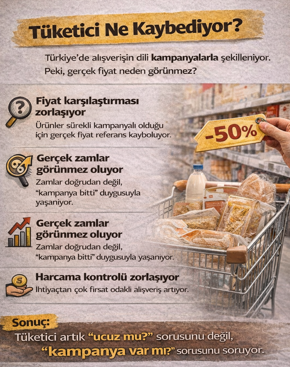 Tüketici artık “ucuz mu?” sorusunu değil, “kampanya var mı?” sorusunu soruyor.