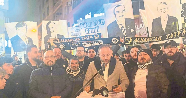 ‘Altay’ın çocuğu Mahmut Özgener’ sloganları atarak Türkiye Futbol Federasyonu ve kulübün eski başkanlarından olan İzmir Ticaret Odası Başkanı Mahmut Özgener’e destek çağrısı yapan taraftarlar okunan metnin ardından organizasyonu tamamladı