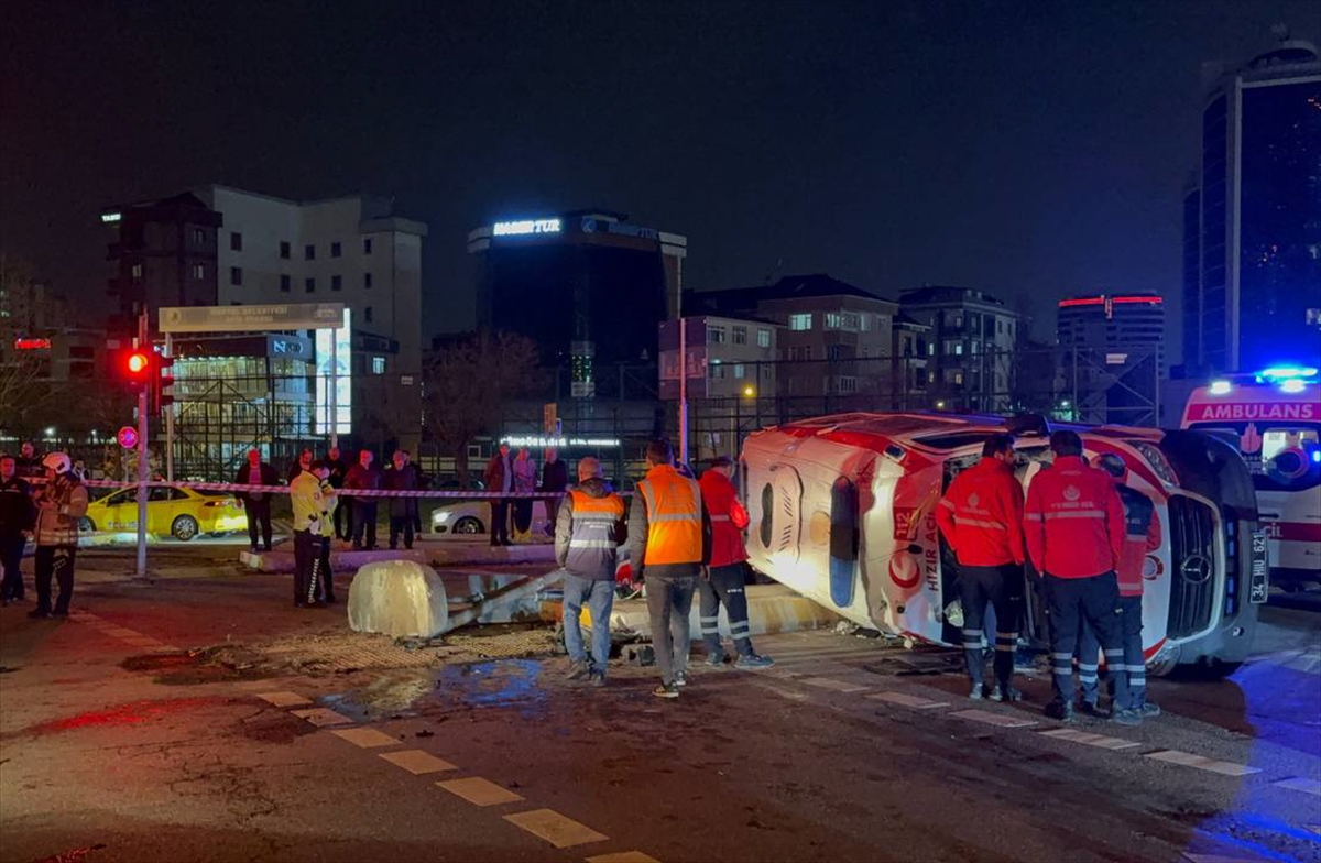 Çarpışmanın etkisiyle takla atan ambulanstaki 2 sağlık görevlisi ve 1 hasta yaralandı.