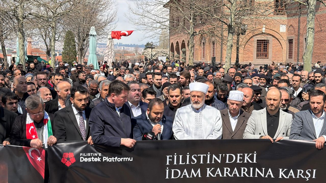 Filistinli esirlere yönelik idamın İsrail Parlamentosu'ndan geçerek yasallaştırılmasının soykırımdan hiçbir farkı olmadığını belirten Filistin'e Destek Platformu Yönetim Kurulu Üyesi Muhammed Cihad Çiğdem, "İnsanlık adeta azgın ve sapkın bir ideoloji tarafından ne yazık ki rehin alınmış durumdadır. Bu esaret girişimine karşı kayıtsız kalacak da değiliz. Siyonist rejim şunu bilsin ki zalimlerin topuna canımızla, başımızla, elimizle, aşımızla, varımızla yoğumuzla direneceğiz. Siyonist İsrail rejimi tarafından Gazze'de işlenen soykırımın kahredici acısı vicdanlarda daha canlı canlı dururken, Lübnan'da ve İran'da ortaya konan yeni vahşetler insanlığı bir kez daha derinden sarsmaktadır. 165 tane İranlı öğrencinin siyonist rejim tarafından henüz daha okul sıralarındayken katledilmesi ve bu katliamın küresel vicdanda yeteri kadar yer bulmaması bizleri derinden sarsıyor olsa da, bugün burada olduğu gibi dünyanın dört bir yanından yükselen sesler bir nebze olsun umutlarımızı diri tutmaktadır ve yeşertmektedir. Açıkça ifade etmek gerekir ki İsrail'in Filistinlilere karşı idamı yasallaştırması tam bir vahşet ve açık bir hukuk ihlalidir. İşgal ettikleri toprakların gerçek sahiplerini ipe götürmeye cüret etmek demek, kendi ipini çekmekten başka bir şey değildir" ifadelerini kullandı.