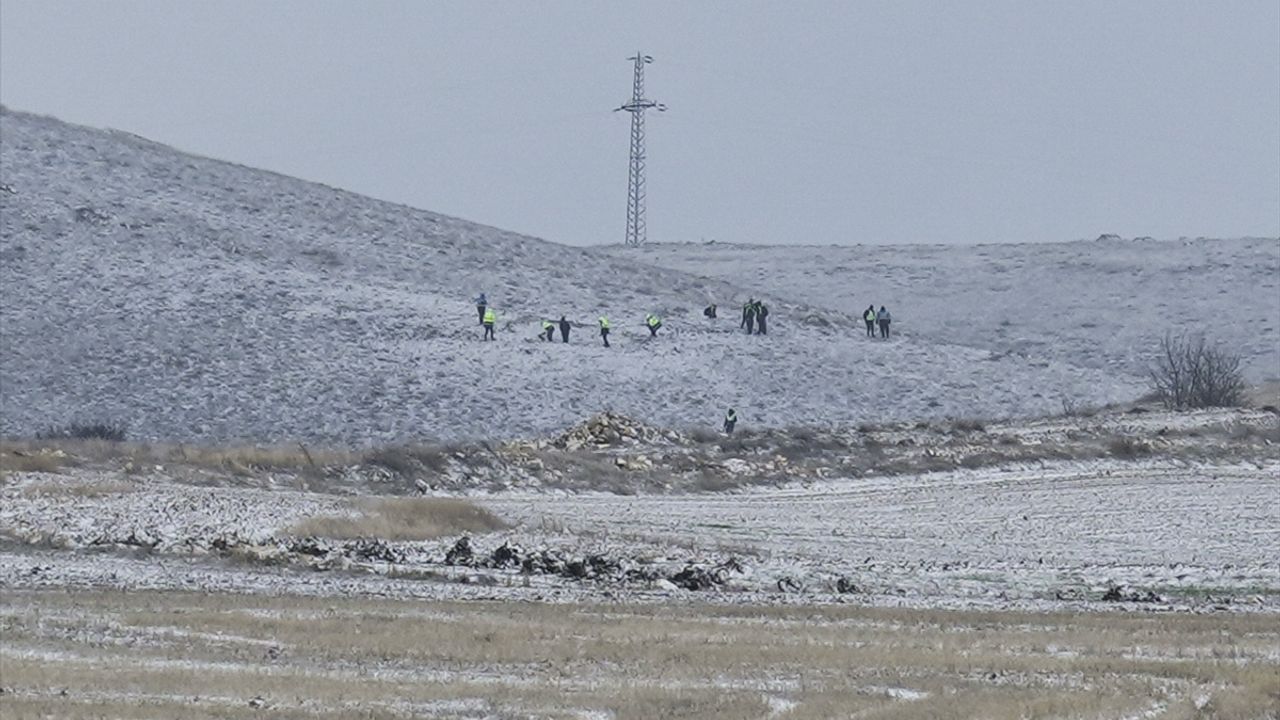 Haymana'nın Kesikkavak köyü yakınına düşen jetin enkazının bulunduğu alandaki çalışmalara sabahın ilk saatlerinde yeniden başlandı.