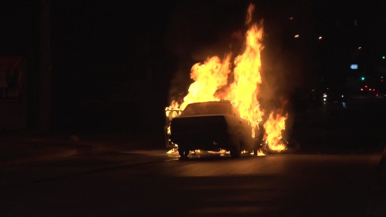 Çevredeki vatandaşların uyarılarına ilk başta anlam veremeyen sürücü Mustafa D., aracıyla birkaç yüz metre daha ilerledi. Ancak kısa bir süre sonra otomobilin motor kısmı aniden alev aldı. Durumun ciddiyetini anlayan ve büyük bir panik yaşayan sürücü, aracı yolun ortasında durdurarak eşi ve kızıyla birlikte saniyeler içinde kendilerini dışarı attı.