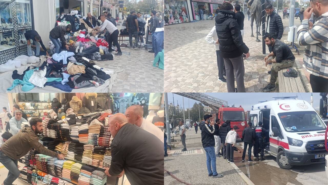 Büyük paniğin yaşandığı yangın sırasında başta dükkan sahipleri ve çalışanları olmak üzere iş merkezinde bulunan esnaf yanan iş yerindeki ürünlerin yangından zarar görmemesi için iş yerinden uzaklaştırdı.