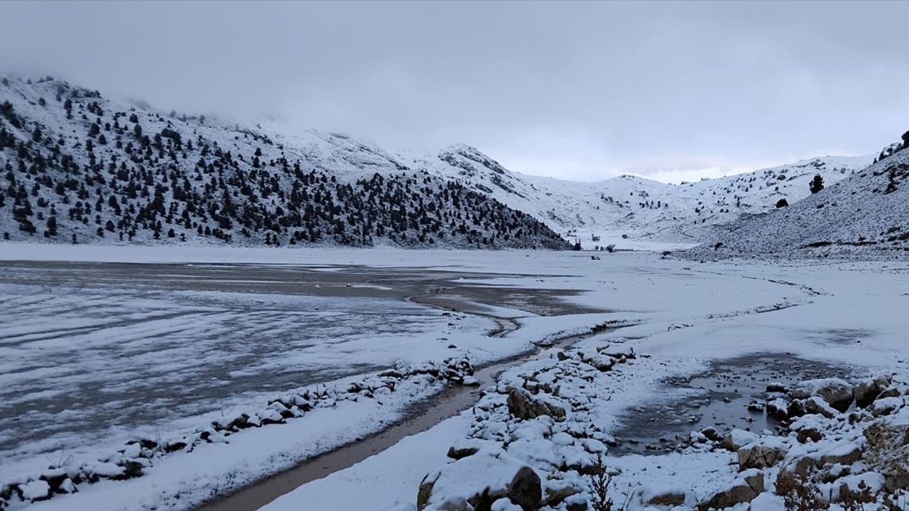 Gömbe Mahallesi'ndeki 3024 metre yüksekliğindeki Akdağ'ın zirvesi beyaza büründü.