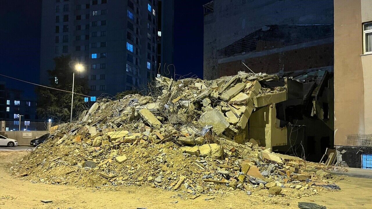 Bina toz bulutu arasında moloz yığınına dönüştü. Yıkım sırasında sokağın geçişe kapatıldığı öğrenildi.