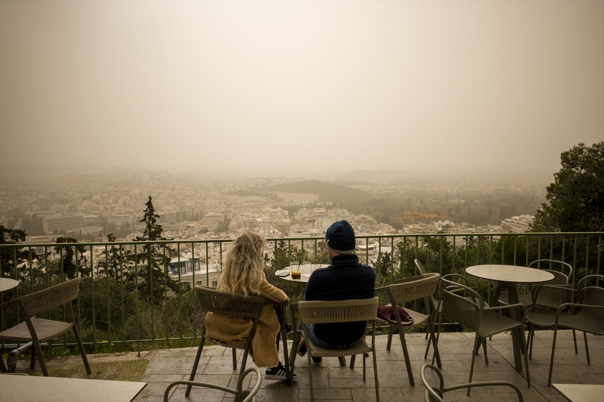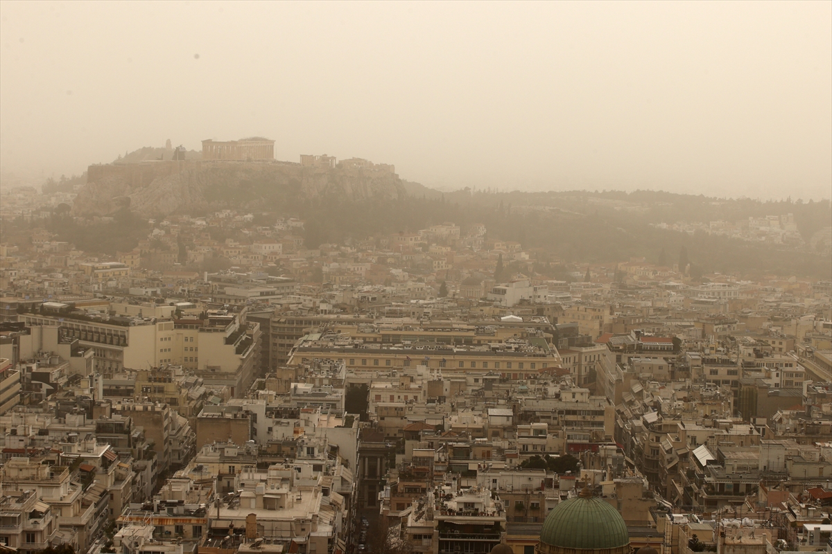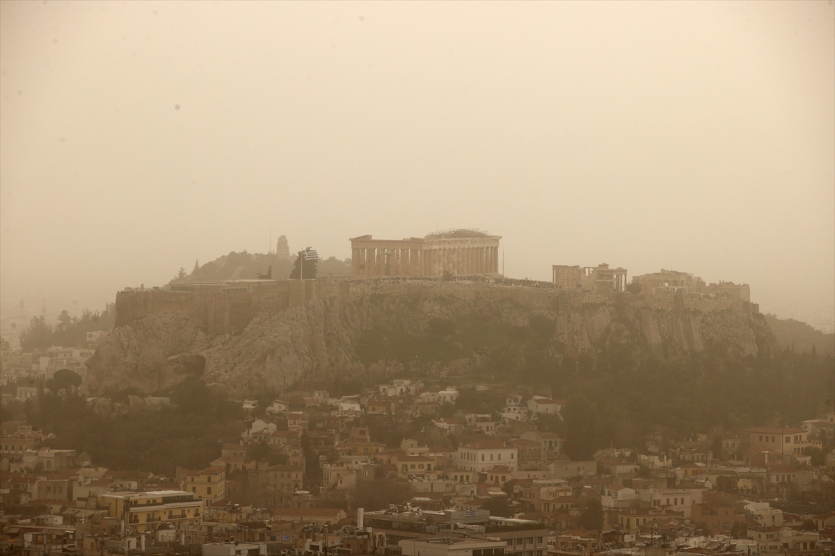 Akropolis gibi tarihi yapılar toz bulutunun ardında adeta gözden kaybolurken, yetkililer özellikle solunum yolu rahatsızlığı olan vatandaşları dışarı çıkmamaları konusunda uyardı.