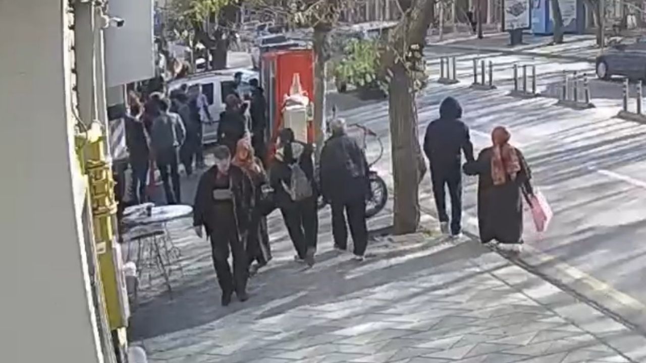 Öte yandan güvenlik kamerasına yansıyan görüntülerde, çevredeki vatandaşların kavgayı ayırmak yerine izlemeyi tercih ettiği görüldü.