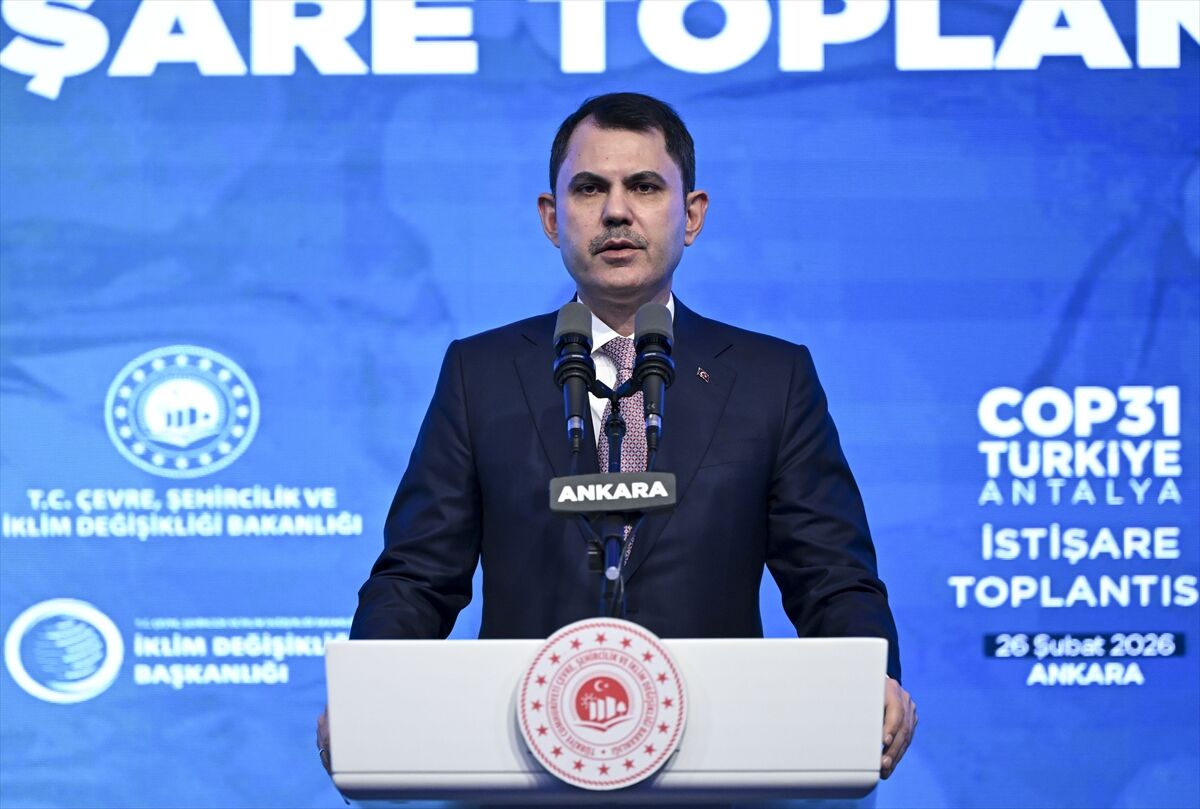 Bakan Kurum, Bilkent Otel'de düzenlenen COP31 Sivil Toplum Kuruluşları (STK) İstişare Toplantısında yaptığı konuşmada, oldukça çetin geçen diplomatik müzakerelerin sonucunda COP31'in ev sahipliğini üstlendiklerini belirtti.