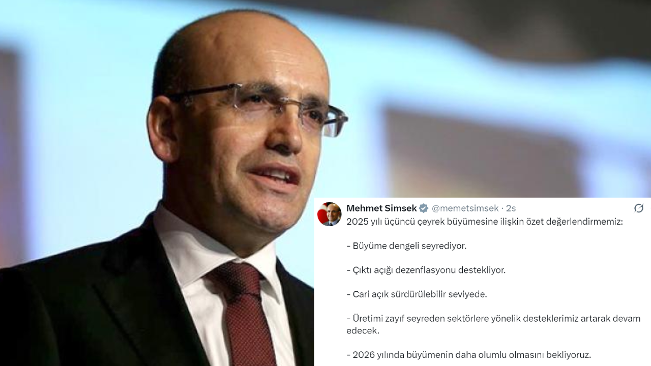 Hazine ve Maliye Bakanı Mehmet Şimşek, Türkiye ekonomisine ilişkin üçüncü çeyrek büyüme verilerini sosyal medya hesabından değerlendirdi. Şimşek, ekonominin 2025’in üçüncü çeyreğinde yıllık bazda yüzde 3,7, mevsim ve takvim etkilerinden arındırılmış olarak ise çeyreklik bazda yüzde 1,1 büyüdüğünü açıkladı. Bakan, ilk dokuz ayda da büyümenin yüzde 3,7 olarak gerçekleştiğini ve yıllıklandırılmış milli gelirin 1,5 trilyon doları aştığını belirtti.
