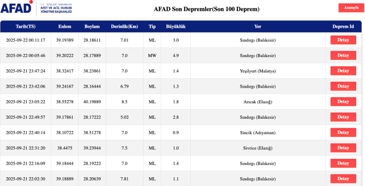 AFAD: BALIKESİR SINDIRGI MERKEZLİ DEPREM 4.9 BÜYÜKLÜĞÜNDE