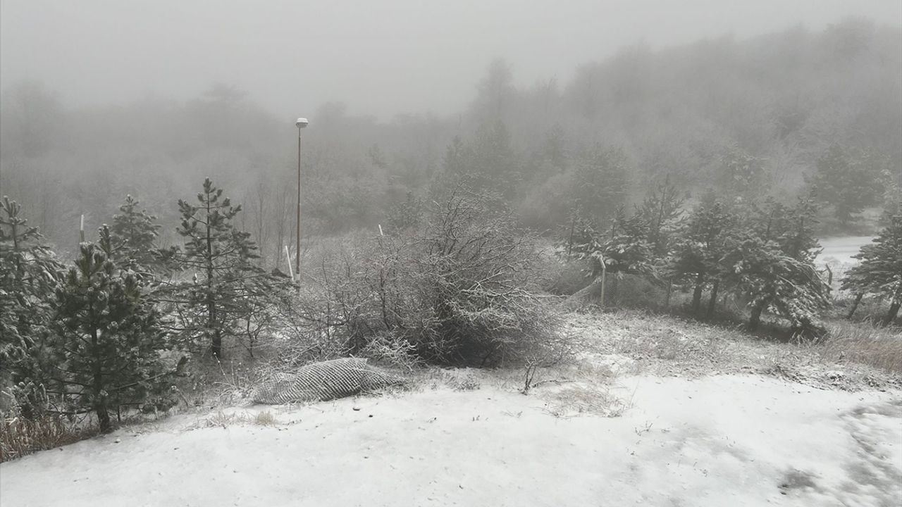 Balıkesir Sıngırdı'nın 1769 metre rakımlı en yüksek noktası olan Ulus Dağı'nın zirvesinde hava sıcaklıklarının düşmesiyle kar etkili oldu.
