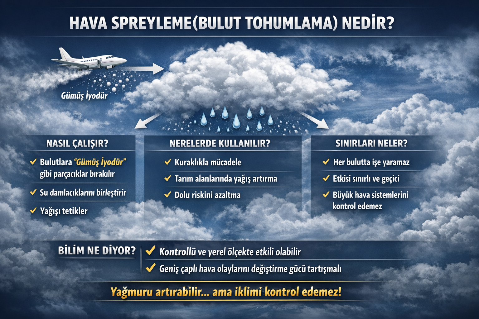 Barajların dolması ve yağışların artmasıyla birlikte sosyal medyada dikkat çeken bir başka tartışma da gündeme geldi. Bazı kullanıcılar, uzun süredir dile getirilen “hava spreyleme” ya da diğer adıyla “bulut tohumlama” uygulamalarının durduğunu ve bu nedenle yağışların arttığını öne sürdü.