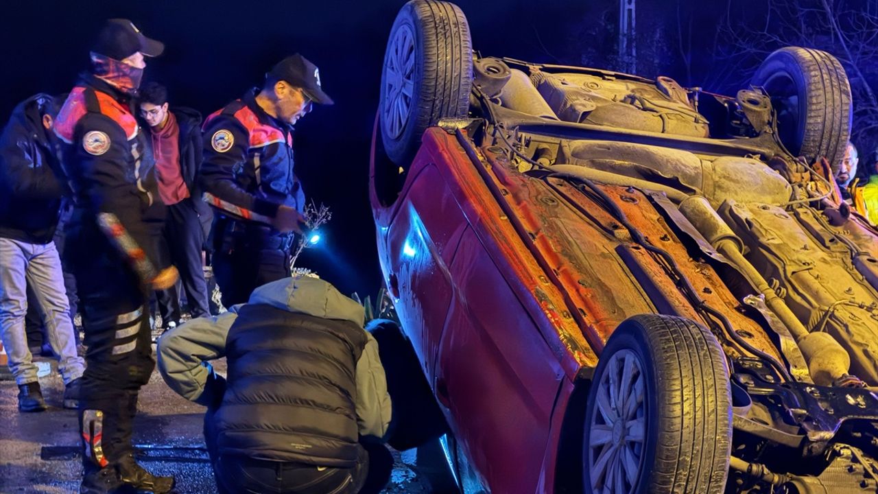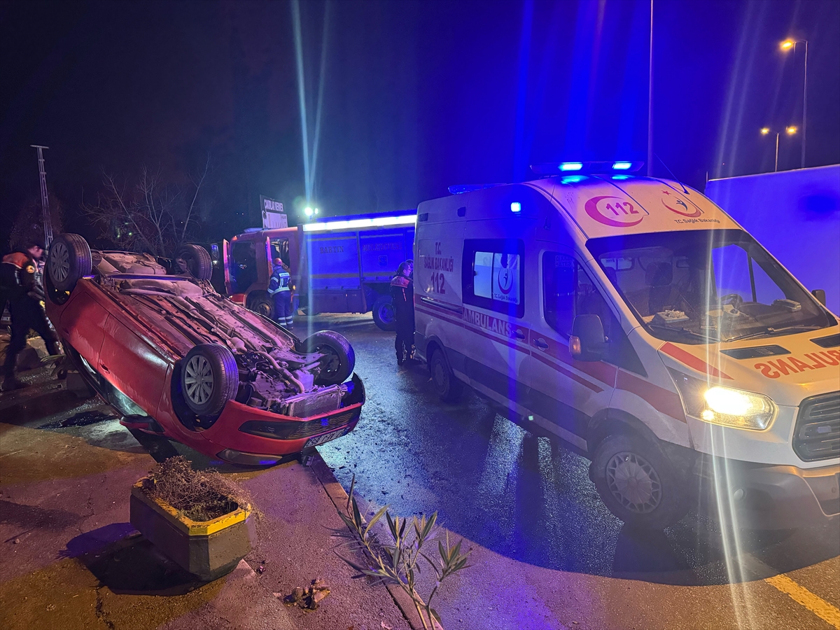 İhbar üzerine bölgeye sağlık ve itfaiye ekipleri sevk edildi, kazada sürücü ile araçta bulunan R.B. ve M.H. yaralandı.