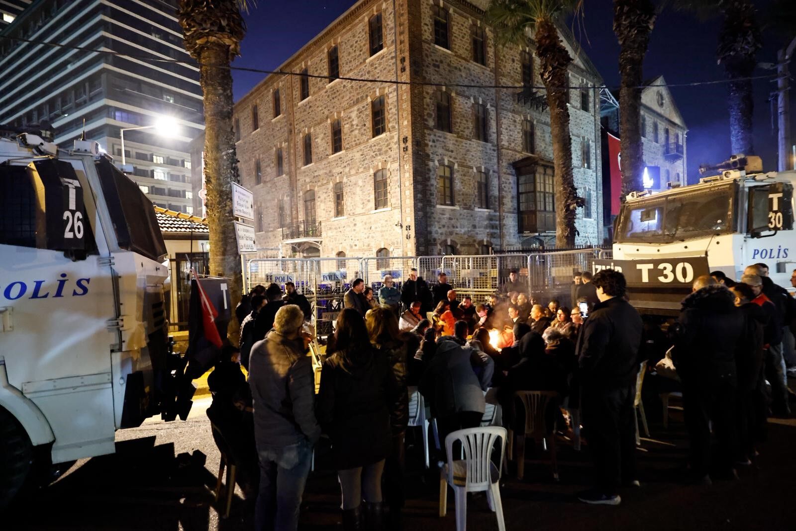 Bütün gece bina önünde olduklarını belirten Tugay, "İl başkanımız, bazı ilçe belediye başkanlarımız, meclis üyelerimiz ve partililerimiz burada. Kararlılığımızı göstermek için buradayız. Bu süreç hepimizi zorluyor ancak birilerinin buna karşı durması gerektiğine inanıyorum. Çünkü tümüyle yanlış ve haksız olan bu tutuma karşı net bir şekilde ‘hayır' denilmesi gerekiyor. Biz yalnızca bu binanın korunması ve elde tutulması için değil, benzer durumların tekrar yaşanmaması için de çaba gösteriyoruz. Umuyorum ki bir sonuca ulaşırız. Ancak bu kararlı duruşun sürmesi gerekiyor. Daha fazla desteğe ihtiyaç duyduğumuz da bir gerçek. Buna rağmen, gerekirse tek başıma da devam edeceğim. Gücümüz yettiğince buradayız" dedi.