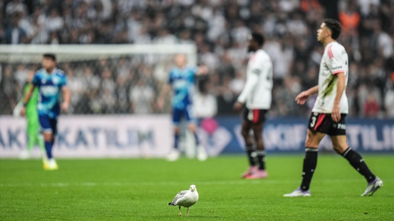 İşte Beşiktaş'ın mabedi Tüpraş Stadı'nın gizemli konuğu tek ayağı sakat olan martı, karşılaşmanın ilk 45 dakikası boyunca sahada kaldı.