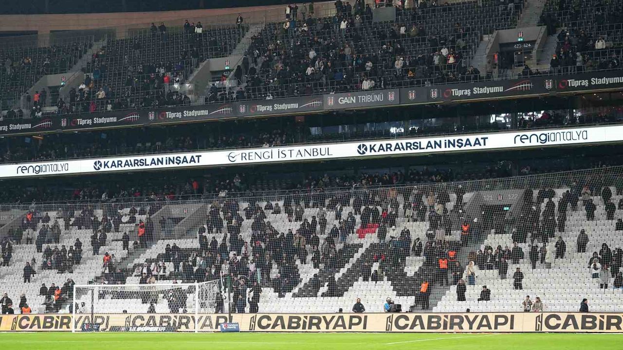 Beşiktaşlı tribünler 82.dakikasında yönetimin aleyhine tezahüratlarda bulundu.
