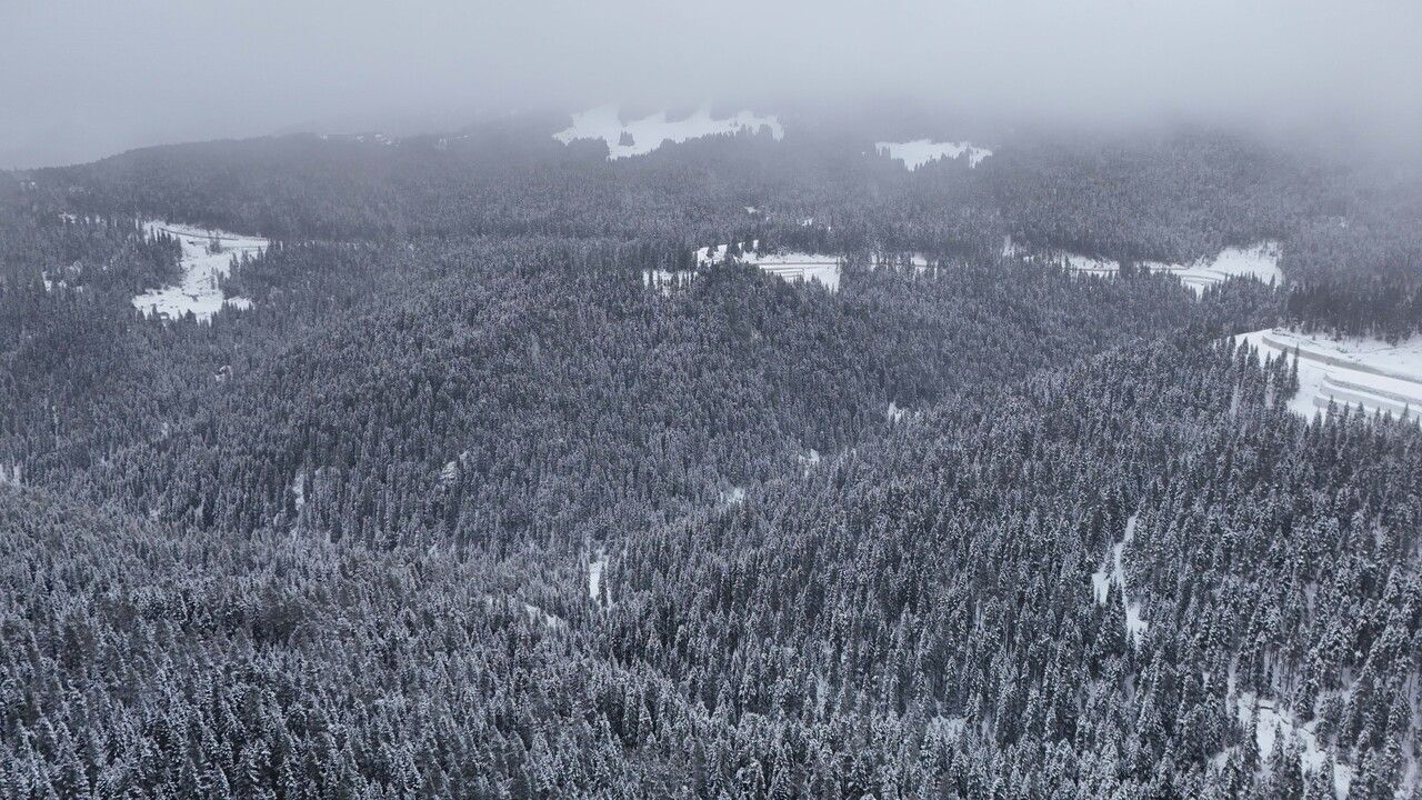 Mest eden görüntülere sahne olan Ilgaz Dağı ve kar yağışı havadan görüntülendi.