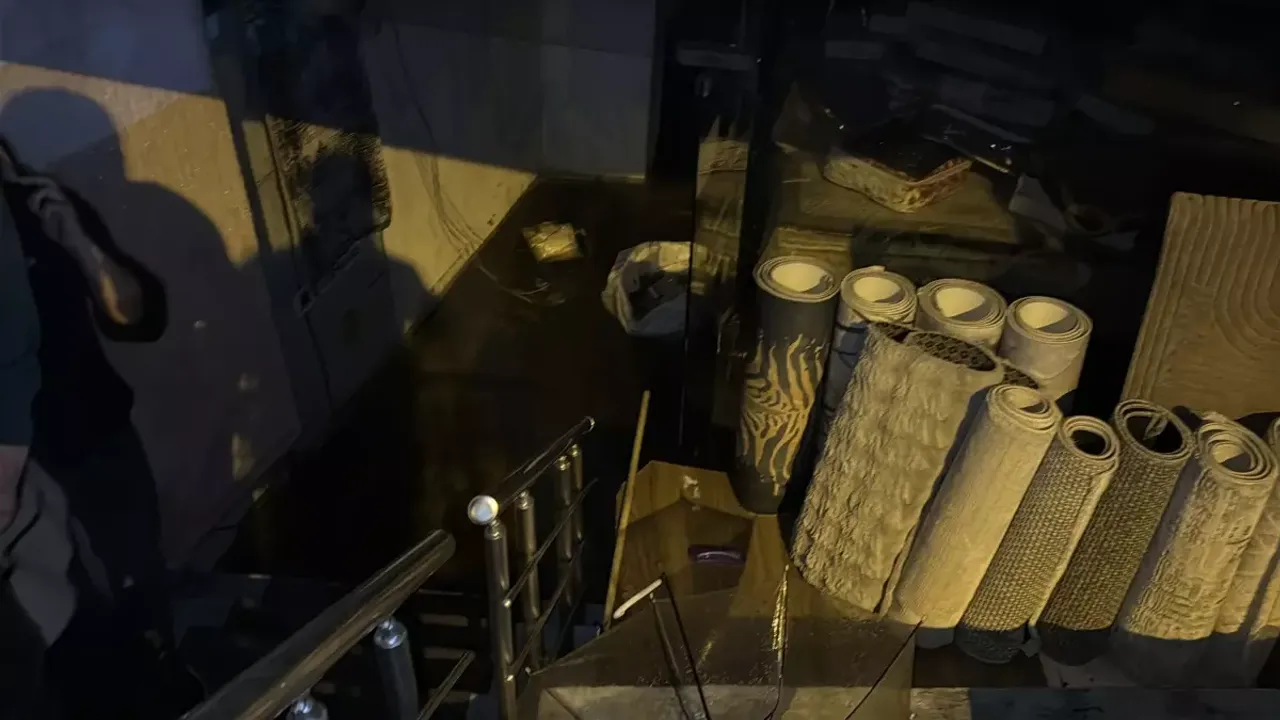 Caddede bulunan bir binanın zemin katındaki halı dükkanını su bastı.