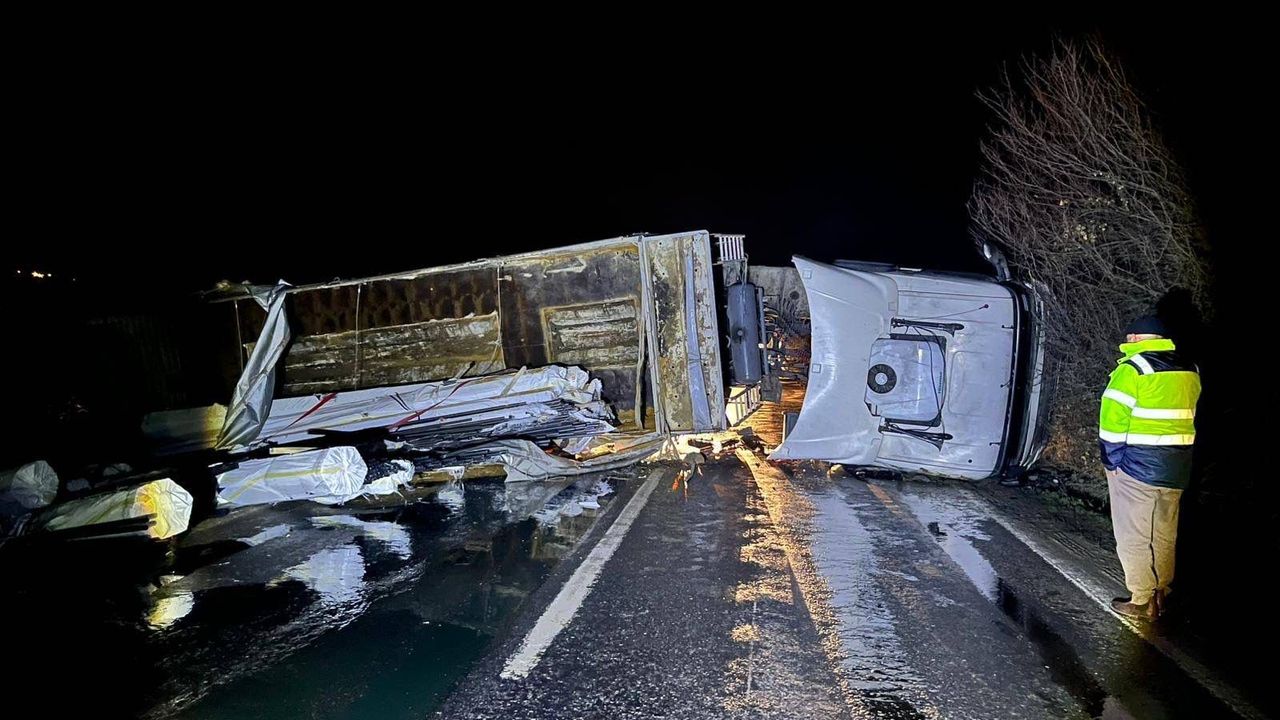 Edinilen bilgilere göre, sürücülüğünü Berkan Ş.’nin yaptığı çekici tır, direksiyon hakimiyetinin kaybetmesi sonucu kaza yaptı.