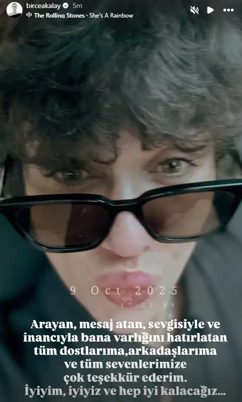 “Arayan, mesaj atan, sevgisiyle ve inancıyla bana varlığını hatırlatan tüm dostlarıma, arkadaşlarıma ve tüm sevenlerimize çok teşekkür ederim. İyiyim, iyiyiz ve hep iyi kalacağız...”