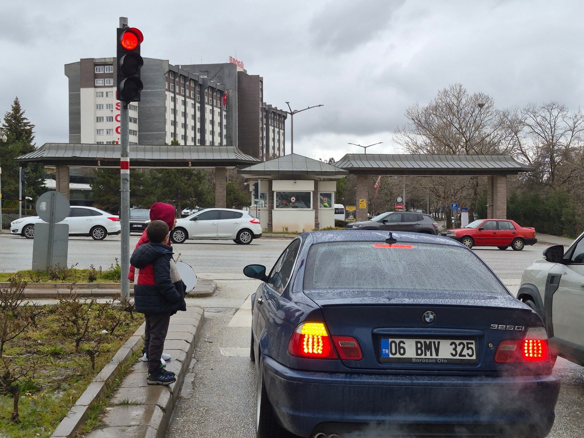 Trafik ışıklarında bekleyen sürücülere keyifli anlar yaşatan minik ikili, görenlerin ilgi odağı oldu. Küçük çocuklar, son dönemlerde sosyal medyada oldukça popüler olan, 'Kabe'de Hacılar Hu Der' ilahisini de seslendirdi.