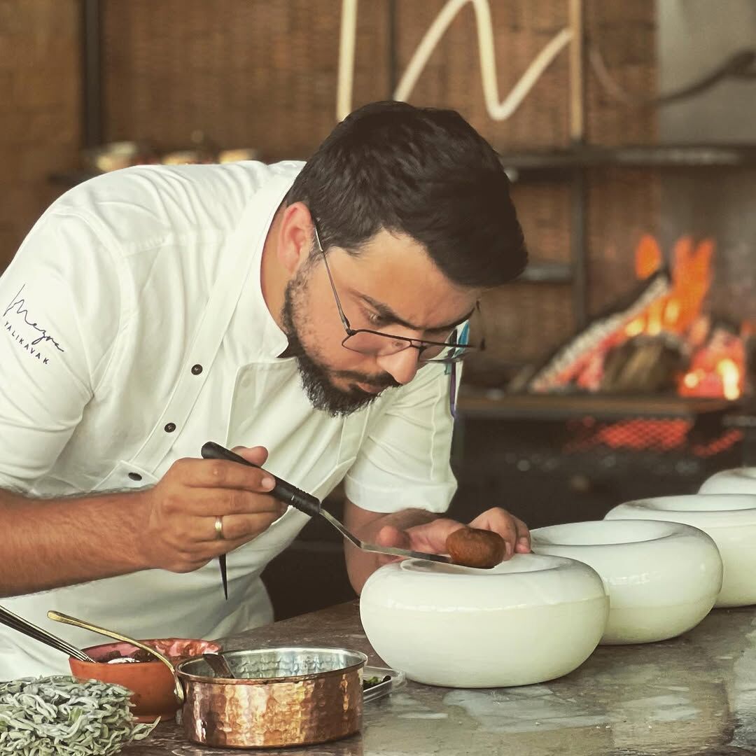 "Tarladan sofraya" felsefesini merkeze alan Mezra Yalıkavak, Şef Serhat Doğramacı’nın sürdürülebilirlik odaklı modern Türk mutfağını temsil ediyor. Kendi bahçesinden topladığı ürünleri ve coğrafi işaretli malzemeleri açık ateş, tandır ve fermente gibi geleneksel tekniklerle işleyen mekan, kadim Anadolu lezzetlerini çağdaş bir sunumla sofraya taşıyor. Keşkek ve tandır gibi geleneksel tatların yanı sıra özgün tatlı yorumlarıyla da öne çıkan Mezra, doğaya saygılı "proje mutfağı" kimliğiyle fark yaratıyor.