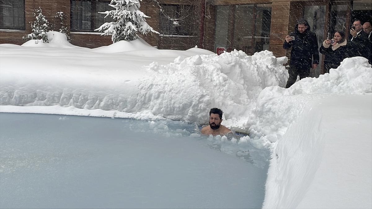 Yeni yıl tatili için New York’tan Bolu’ya gelen Türk turist, sıfırın altında 10 derece olan havada buz tutmuş havuza girerek gündem oldu.