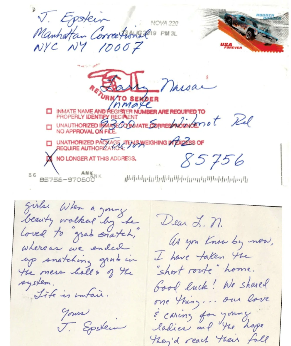 DOJ ve FBI tarafından yapılan incelemelere göre, kartpostaldaki el yazısı Epstein’e ait değil. Ayrıca kartpostalın posta damgasının Virginia’dan olduğu belirlendi. Epstein ise o tarihte New York’taki Manhattan Metropolitan Cezaevi’nde (MCC) tutukluydu.