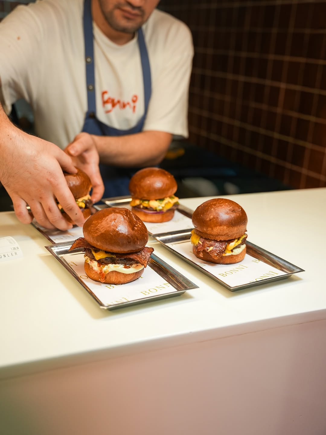 Biz Emre Tezen ve Batuhan Yenidere; Bonni’nin kurucu ortaklarıyız. Uzun yıllar profesyonel mutfaklarda, özellikle fine dining tarafında çalıştıktan sonra edindiğimiz teknik bilgiyi ve bakış açısını daha ulaşılabilir bir formda sunmak istedik. Bonni bizim için sadece bir burger markası değil; mutfakta öğrendiklerimizin sade ama iddialı bir yansıması.