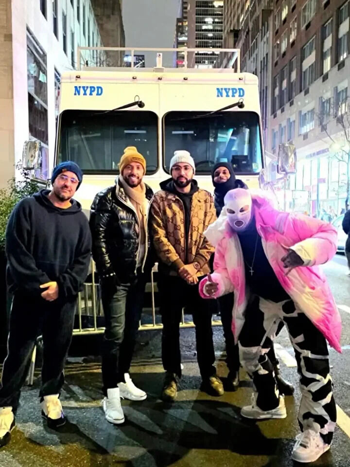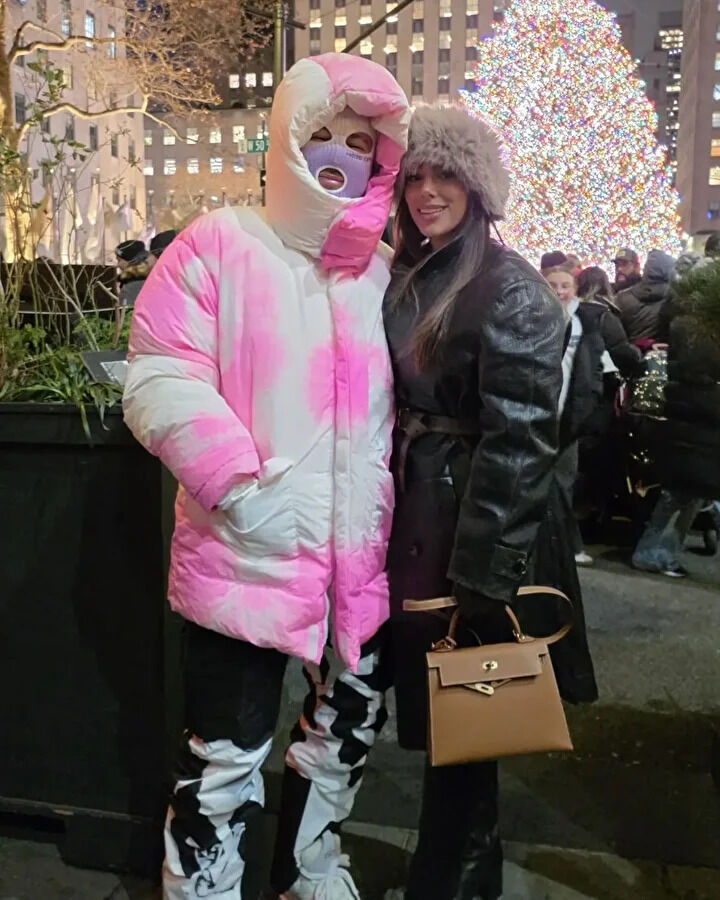 Santos forması giyen 33 yaşındaki Neymar, Times Meydanı’nda pembe ve beyaz tonlardaki dikkat çekici montu ile objektiflere yansıdı. Yıldız futbolcu, mor renkli kar maskesiyle kimliğini gizlemeye çalıştı.