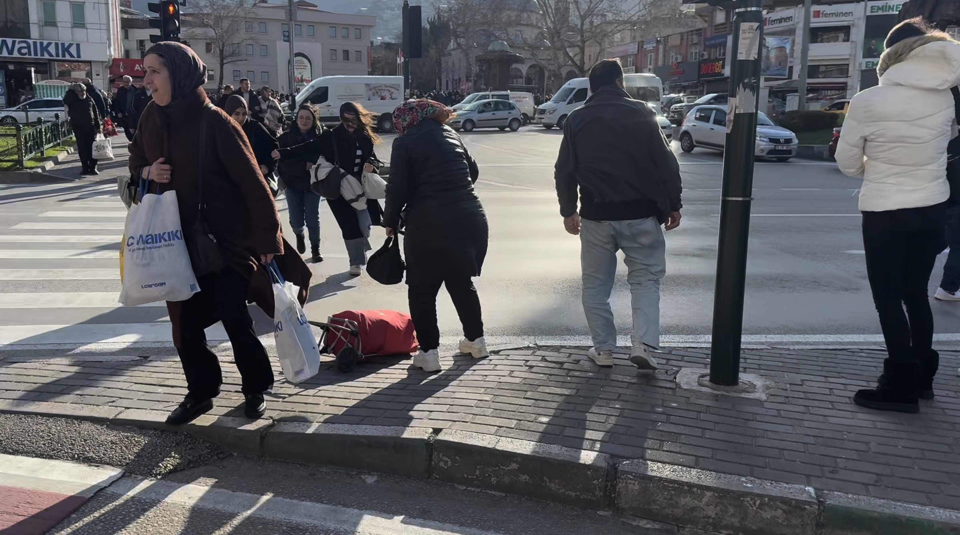 Bursa genelinde etkisini artıran kuvvetli rüzgâr, özellikle yaya trafiğinin yoğun olduğu bölgelerde zor anlara neden oldu. Pazar alışverişinden dönen bir vatandaşın elindeki pazar arabası, rüzgârın şiddetiyle devrildi.