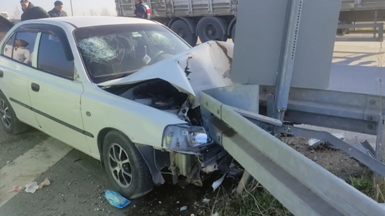Mesut S. (49) idaresindeki 16 BIN 102 plakalı otomobil, İnegöl-Eskişehir kara yolunda sürücüsünün direksiyon hakimiyetini kaybetmesi sonucu köprülü kavşağın bariyerine çarptı.