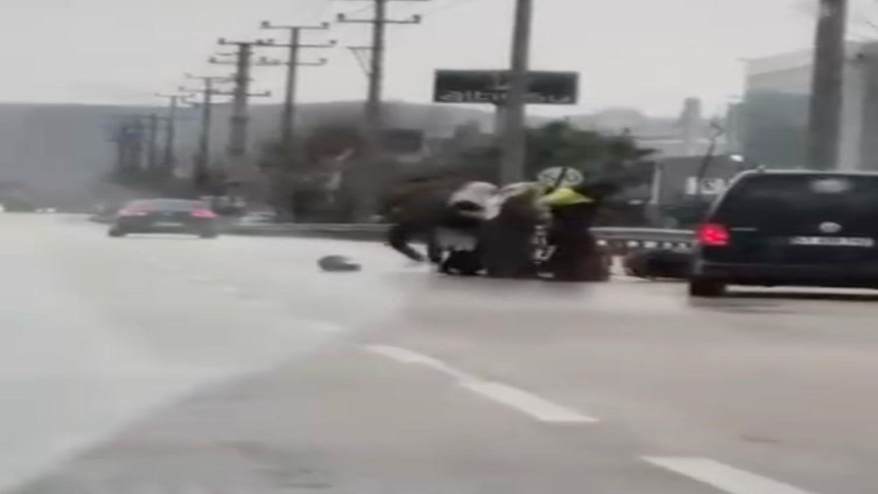 Çıkan tartışma sonrası araçtan inen sürücü motokuryeyi darp etmeye başladı.