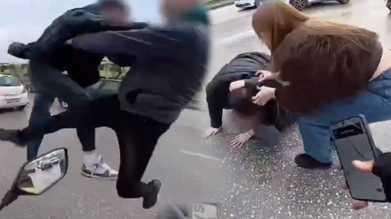 Bursa-İzmir yolu üzerinde "yol verme" meselesi sebebiyle sürücü arasında gergin anlar yaşandı. Araçlarından inen taraflar birbirlerine uçan tekmeyle saldırdı. Korku dolu anlar kameraya yansırken, tarafları yoldan geçen kurye ve çevredeki sürücüler ayırdı.